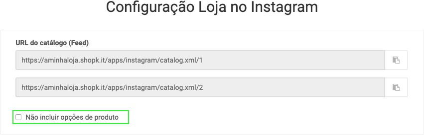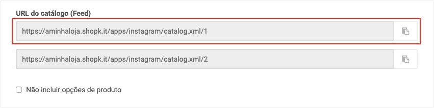Adicionar um URL do feed de dados. Deverá copiar e colar o URL do catálogo que surge no detalhe da app Loja no Instagram (menu Apps / Canais de Venda / Loja no Instagram);