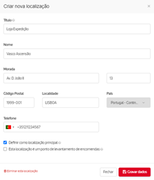 Aceda ao menu Configurações / Envio / Expedição e defina a morada de onde faz a expedição das suas encomendas.