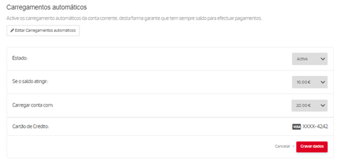 Para poder usar a funcionalidade de expedição de encomendas, necessita de ativar os carregamentos automáticos da conta corrente. Os carregamentos automáticos são obrigatórios porque a cobrança do serviço de expedição é feita em pós-pagamento.