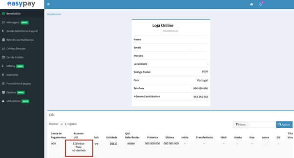 Esta informação pode ser encontrada no backoffice da Easypay no menu Beneficiário.