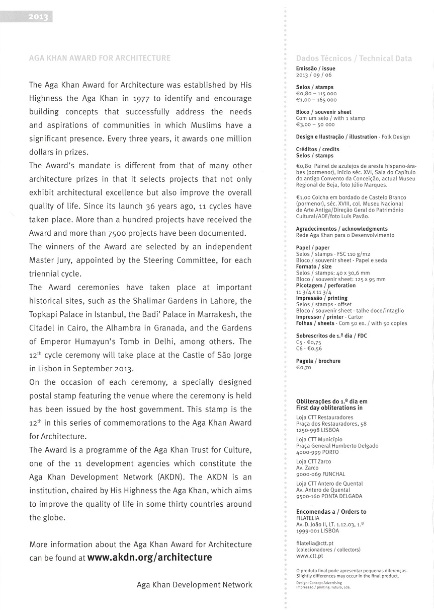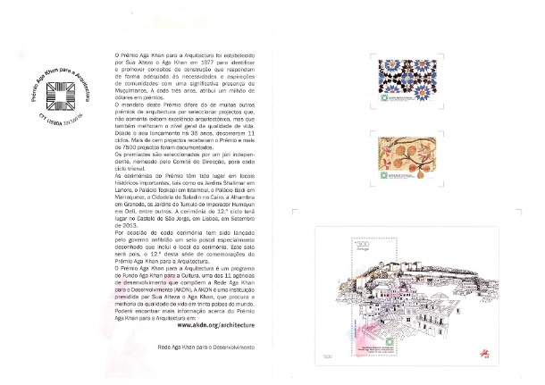 Pagela c/ Série e Bloco (PGSB) Prémio Aga Khan para a Arquitectura