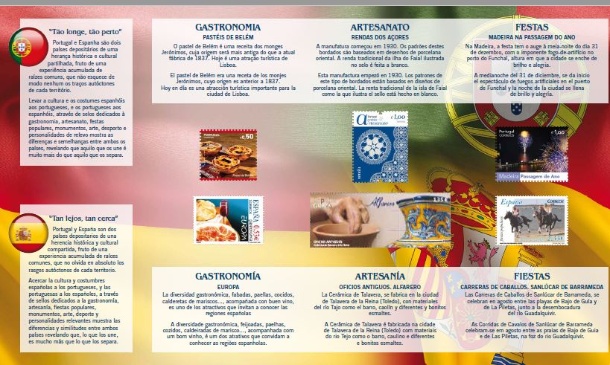 Esta Carteira é composta por 14 selos, 7 de cada país, relativos a 7 áreas culturais: