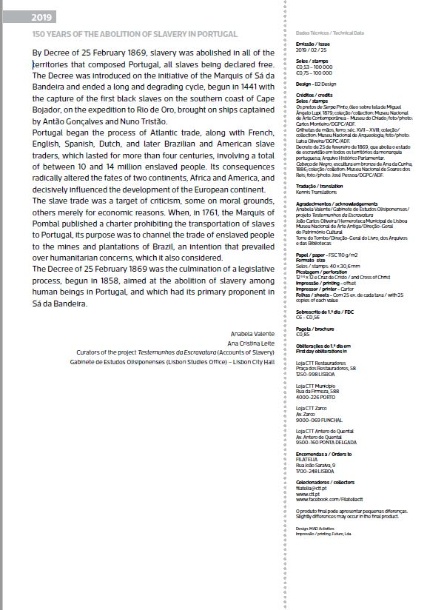 Pagela com Série (PGS) 150 Anos da Abolição da Escravatura em Portugal