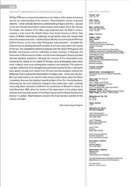Pagela com série e bloco (PGSB) 100 Anos do Eclipse de Einstein