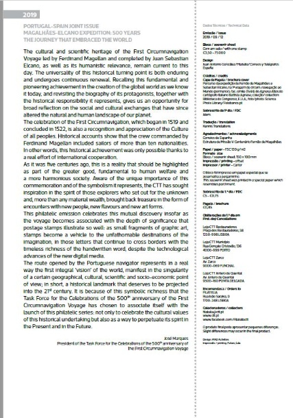 Pagela com bloco (PGB) V Centenário da Expedição Magalhães-ElCano