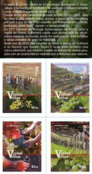 Os CTT Correios de Portugal homenageiam há muitos anos a região do Douro, a primeira região cuja demarcação foi ofi cialmente legislada no mundo, tendo-lhe dedicado um livro temático e várias emissões de selos da República.